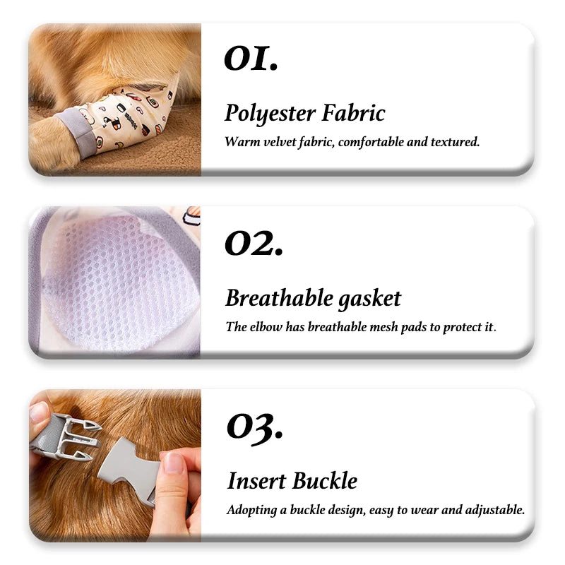 It offers a superior alternative to traditional bandages and cones. While hard cones can restrict movement and cause stress, these sleeves are designed for comfort, flexibility, and freedom. Made from durable polyester with a soft velvet lining, they allow dogs to rest, walk, and play without discomfort — all while protecting their sensitive joints.